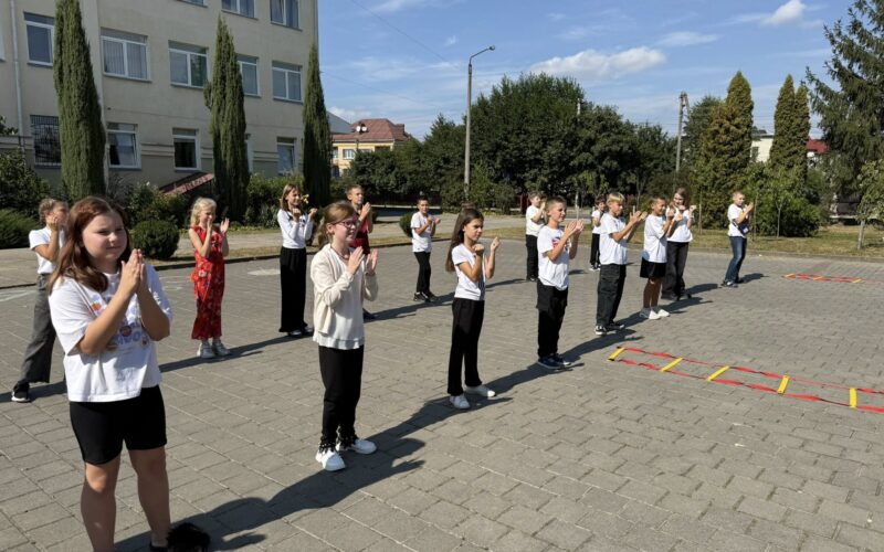 Учні 5-х класів розминалися разом із Катериною Костріковою, брали участь у веселих естафетах, вигадували назви команд та підтримували одне одного. З вітальним словом до школярів звернувся керівник ГО «Позиція краю» Роман Хомен.